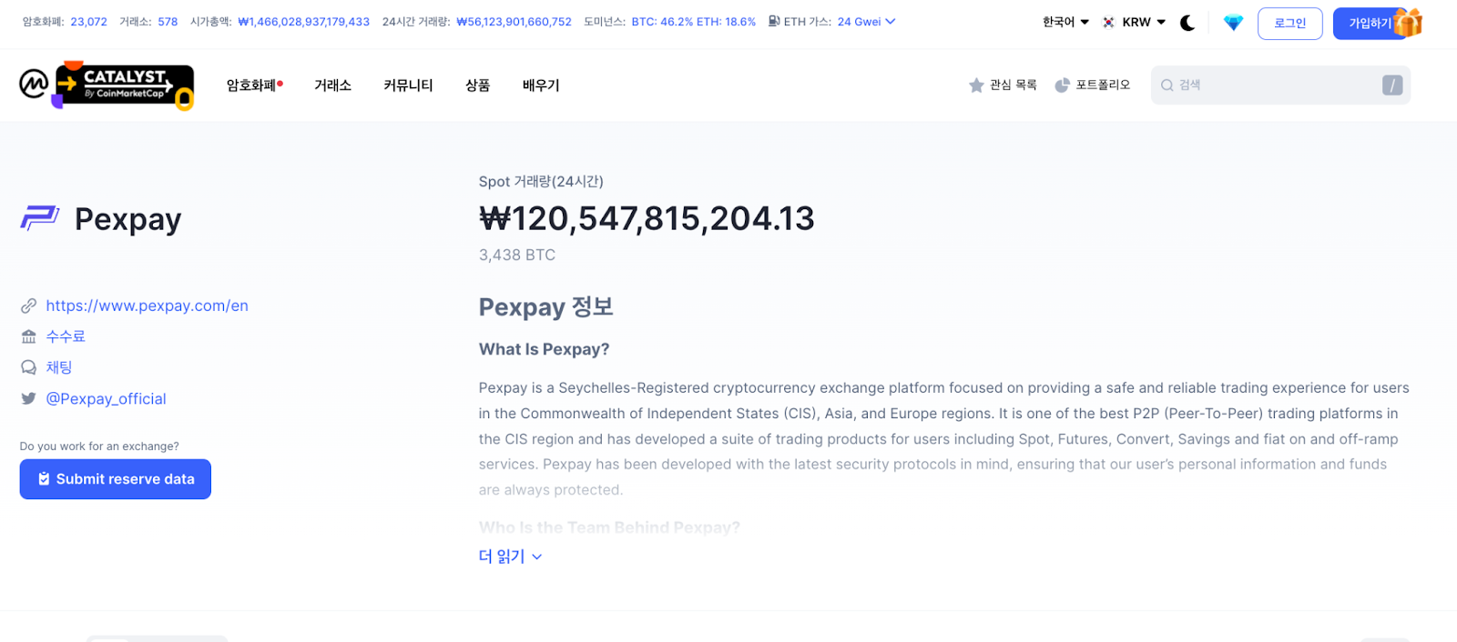 코인마켓캡 정식 등록 거래소 펙스페이(PEXPAY)
