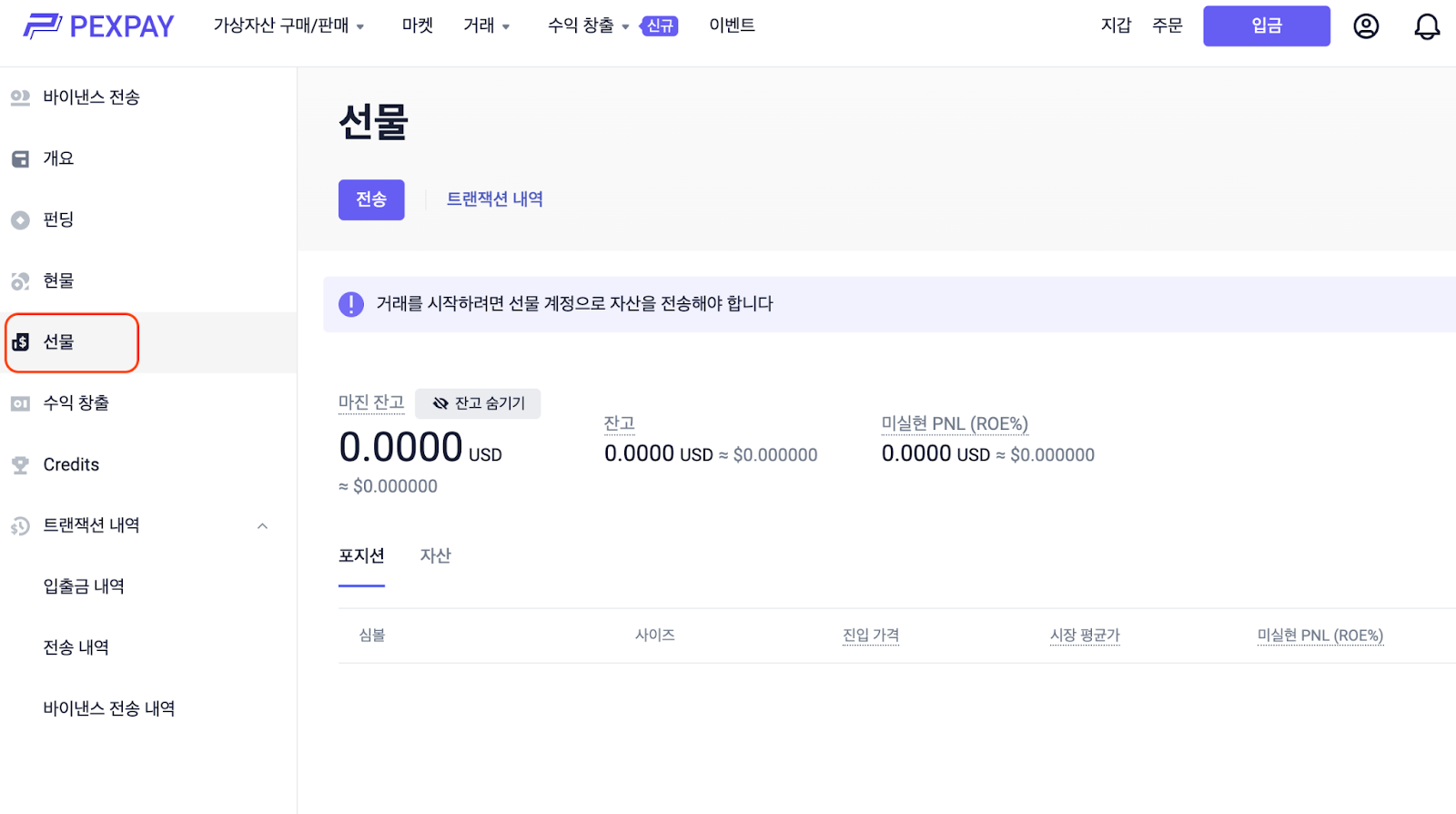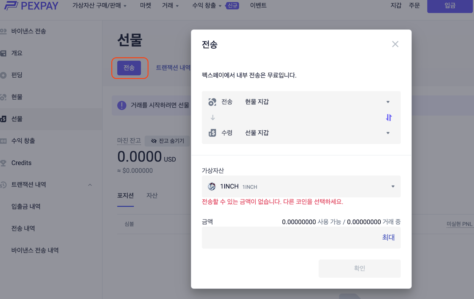 선물로 이동하여 현물/자금 지갑에서 선물 지갑으로 USDT를 전송합니다.